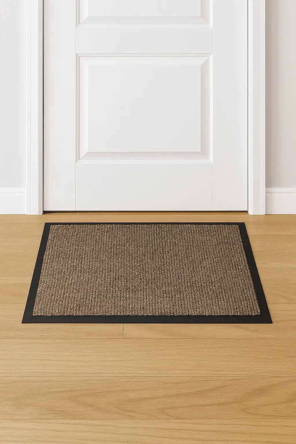 Siyah Kenarlı Kahverengi Nem Alıcı Kapı Paspası, ev ve işletme girişlerinde estetik görünümle birlikte maksimum hijyen sağlar.